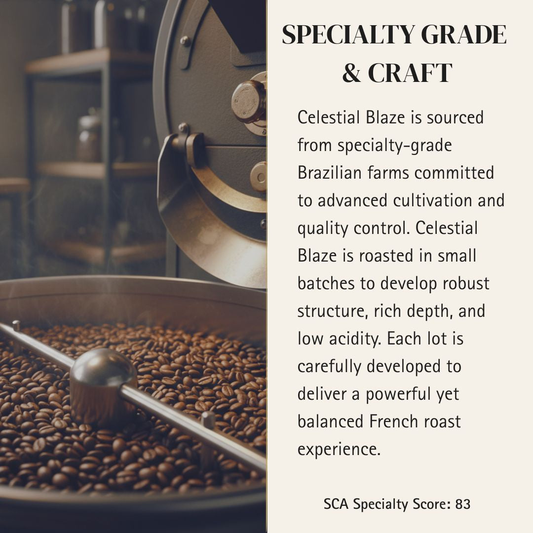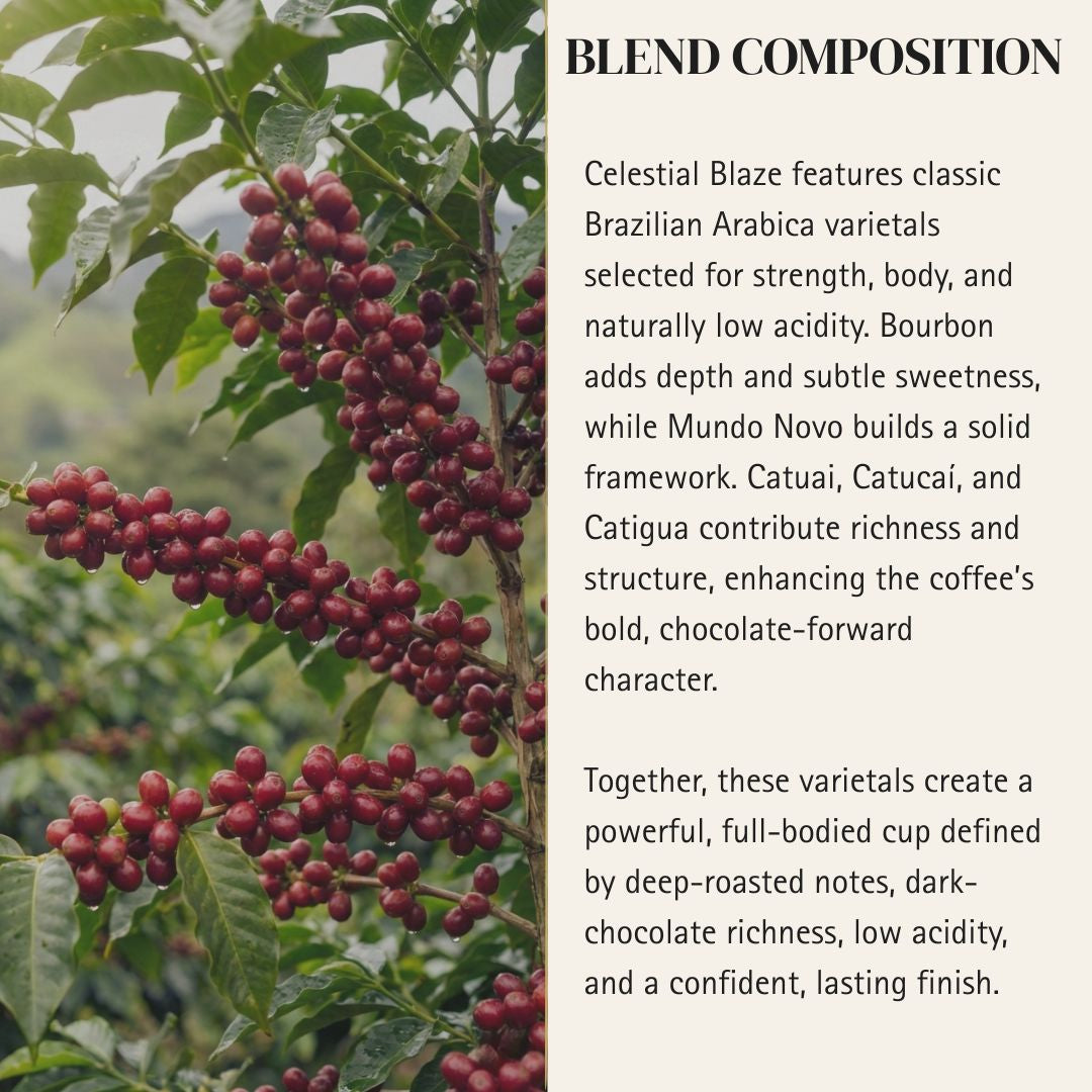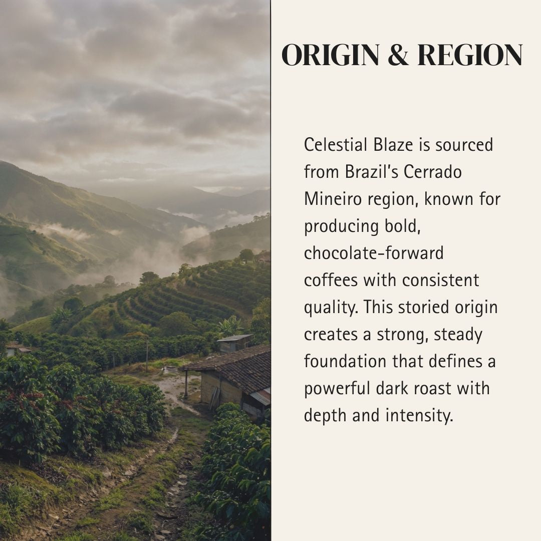 A bold Brazilian-crafted dark roast layered with bittersweet chocolate richness and toasty depth. Low acidity and full body create a powerful, structured cup with a smooth, lingering finish.