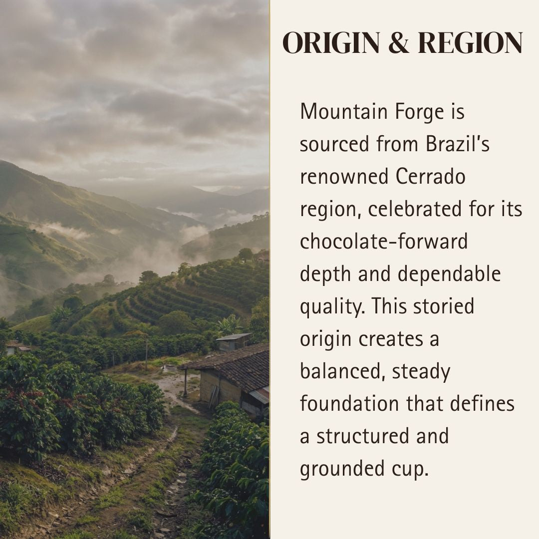 A smooth, structured Brazilian single origin from Cerrado layered with roasted peanut warmth, honeyed sweetness, and milk chocolate richness. Heavy body and mild acidity create a steady, well-built cup with classic, dependable character.